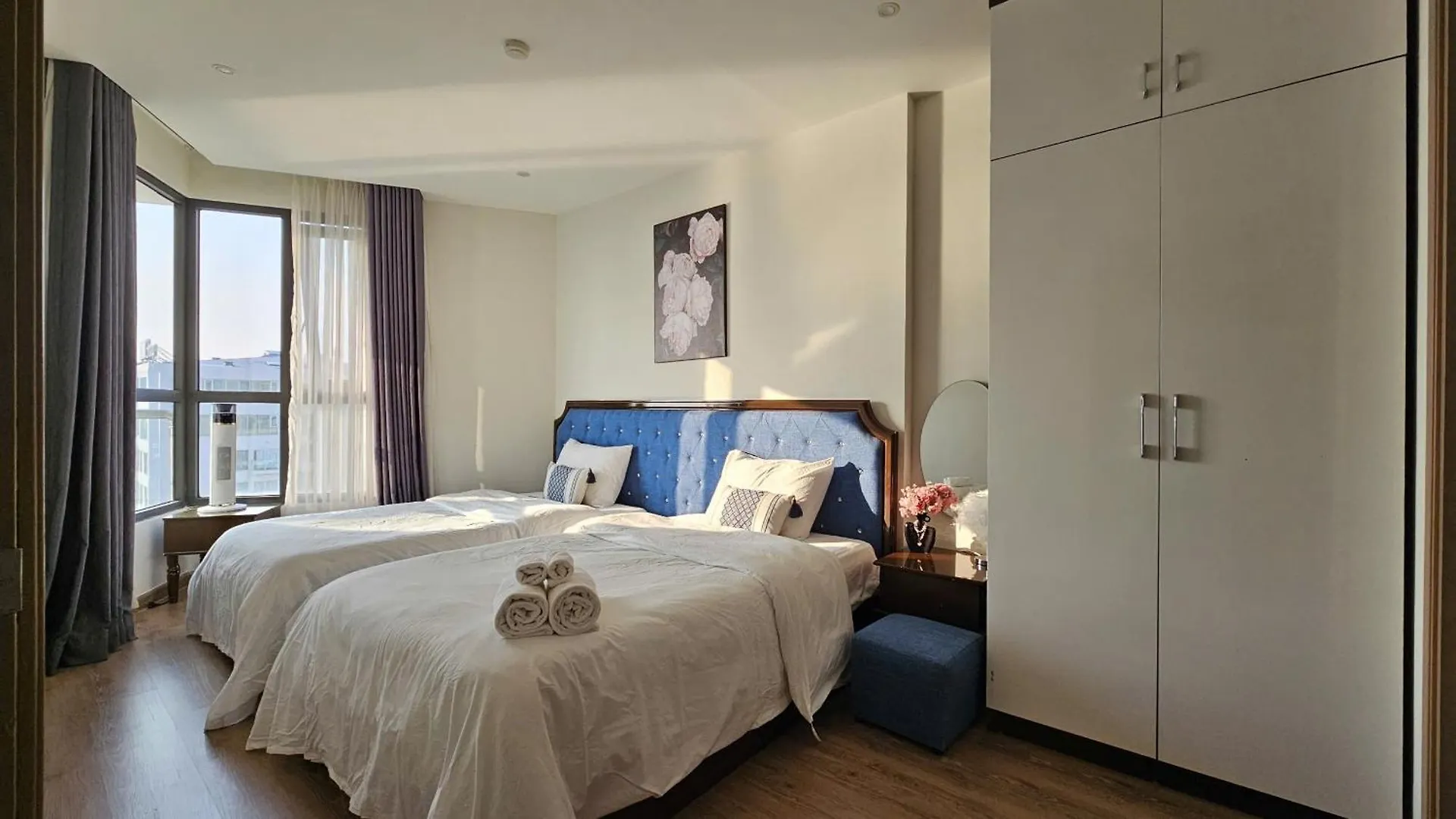 The apartment lies in the Bai Chay district, 1.3 miles from the artificial Bai Chay Beach. There is also private access to a private beach.